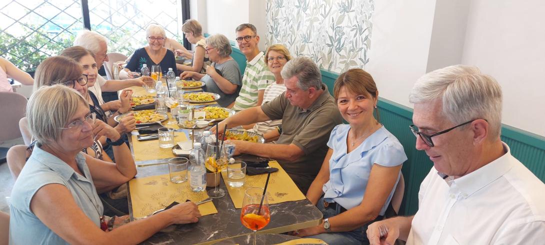 Dopo il tour, iniziato e concluso in piazza Gran Madre, tra le bancarelle del mercatino "vintage", un bel gruppetto si è ancora fermato a pranzare insieme in un locale della zona.
